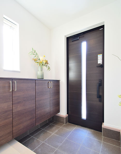 たっぷり収納できるシューズCLで靴が散乱しない、キレイを保てる玄関に◎小窓から日光が入ってくるので、明るい玄関になります♪