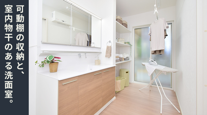 洗面室に向かう際の通り道になる玄関収納。靴を片付けてから家の中に入ることで、いつでもすっきりとした玄関を保てます◎可動棚+大容量なので、外遊び道具や帽子なども収納できる充実の玄関収納です。