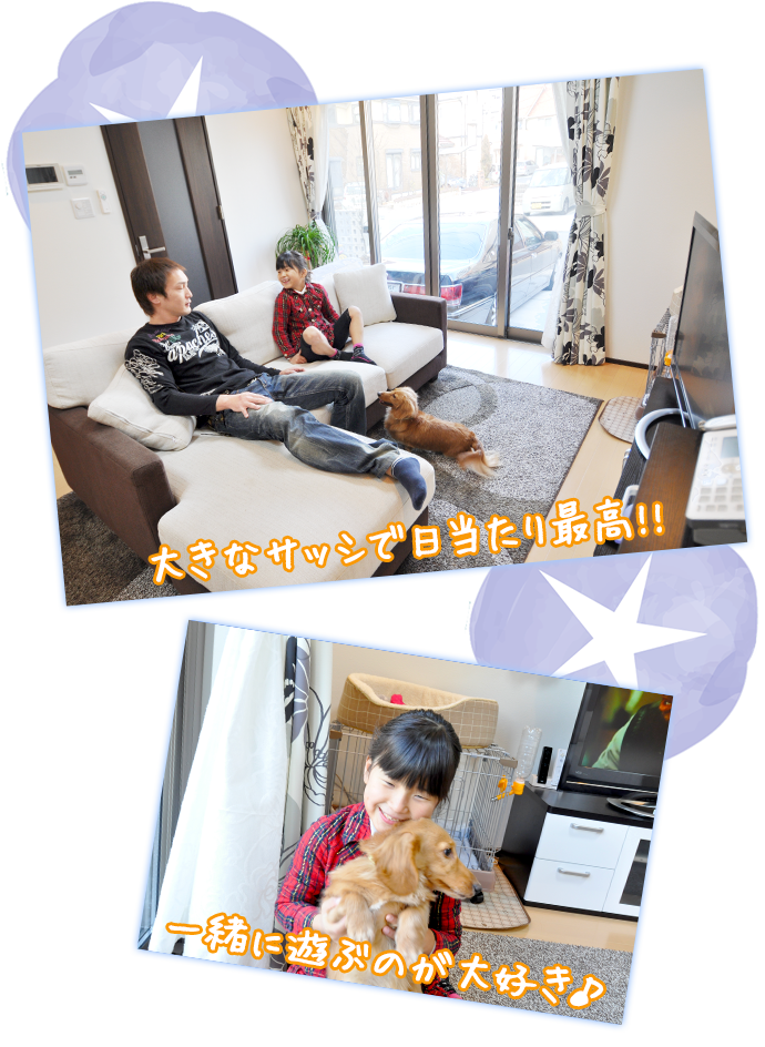家族とペットがくつろげる広くて明るいリビングが、最高にお気に入りです!!