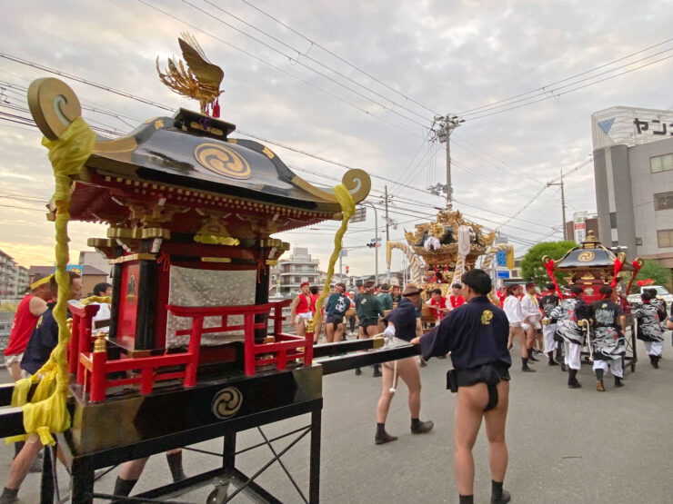 迫力ある太鼓の音、煌びやかな屋台や神輿に