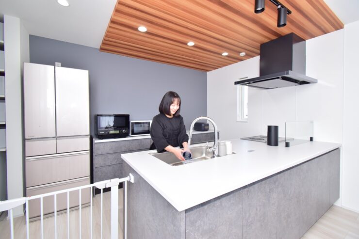 また、フルフラットの対面キッチンは視界が広く、子どもの様子を見守りながら料理ができるのでお気に入りです。