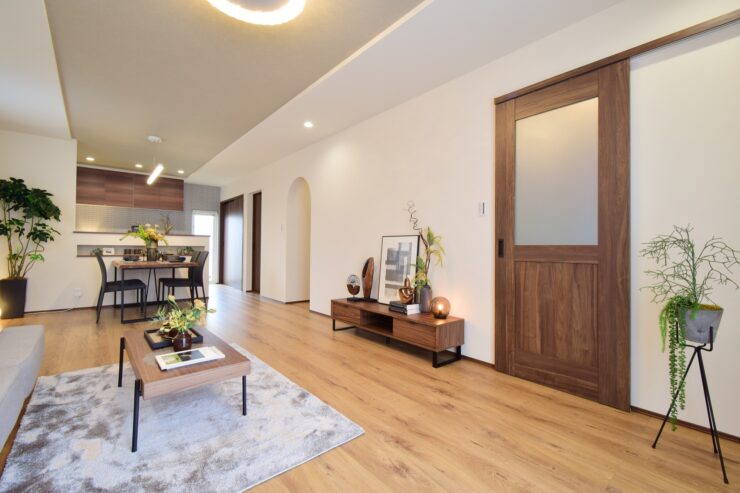 床もドアも「明るい木目調」や「ホワイト系」で揃えると、空間に繋がりが生まれ、部屋全体が広くスッキリと見えます。