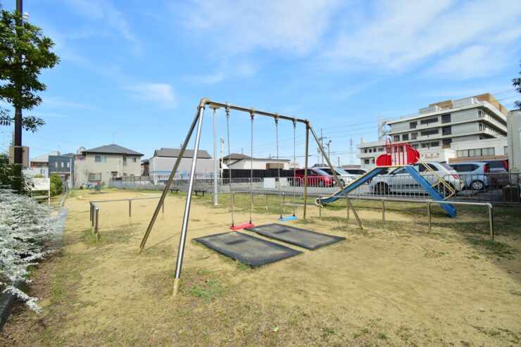 徒歩2〜3分の身近な場所には、滑り台やブランコなどの遊具のある「下沖田公園」があり、お子様が思いっきり体を動かして遊べます。