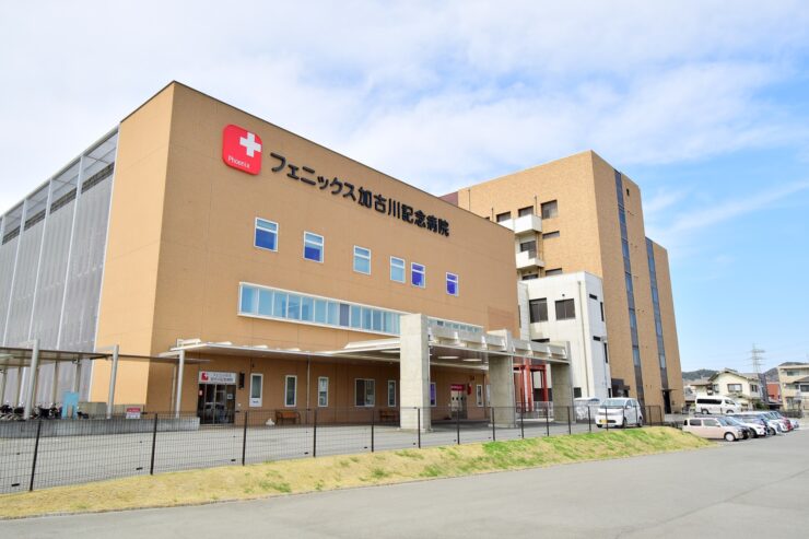 もうひとつ、この分譲地の大きな安心ポイントが、歩いてすぐ(60〜110m)の場所に総合病院「フェニックス加古川記念病院」があること。