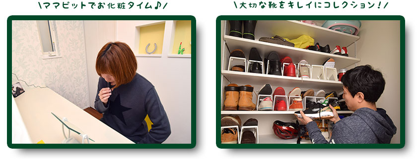 田中さんの提案でママピットの後ろに収納を設けたんですが、